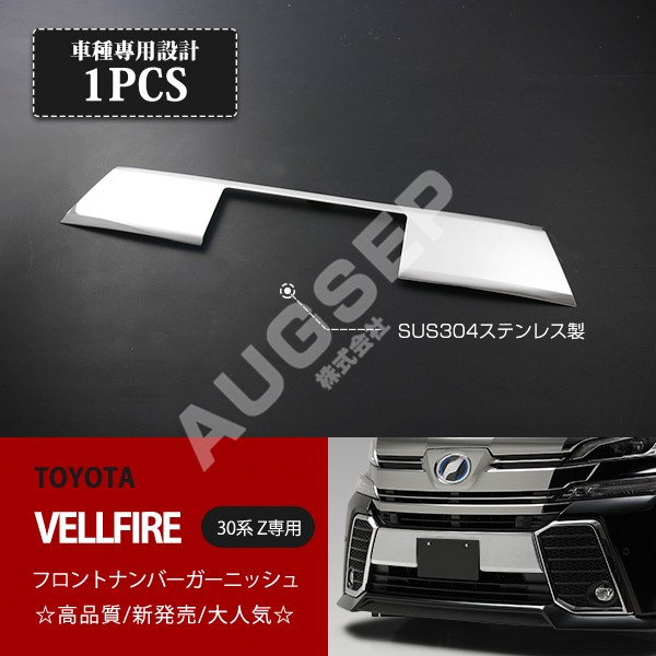 [割引]トヨタ ヴェルファイア 30系 前/後期 フロントナンバープレートガーニッシュ ナンバープレートモール ステンレス鏡面トリム 1P au-ex484