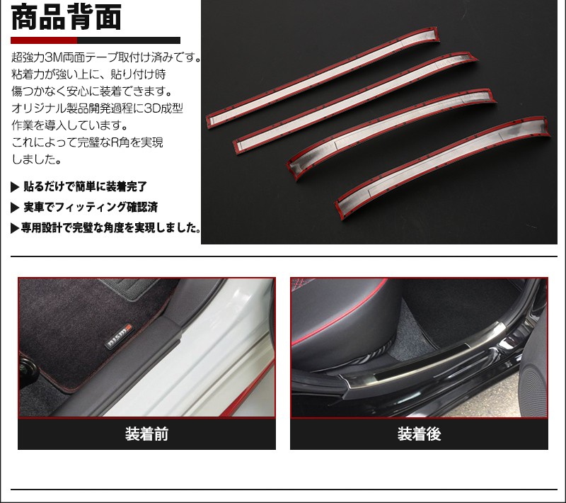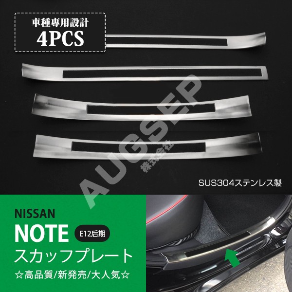 [割引]日産 ノート E12 前/後期 スカッフプレート サイドドアステップカバー モール インテリアパネル ステンレス ヘアライン仕上げ 4P au2652