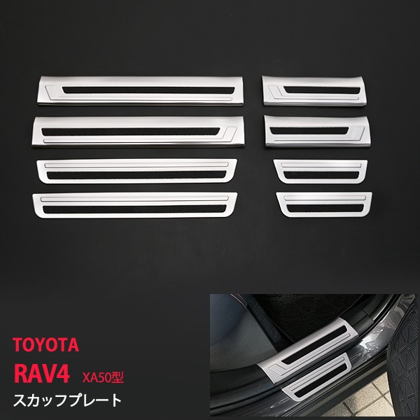 [爆割]ラブ4 RAV4 XA50型 2019年4月〜 サイドドアステッププレート スカッフプレート サイドパネル ステップガード ステンレス サテン仕上げ 8P au4413
