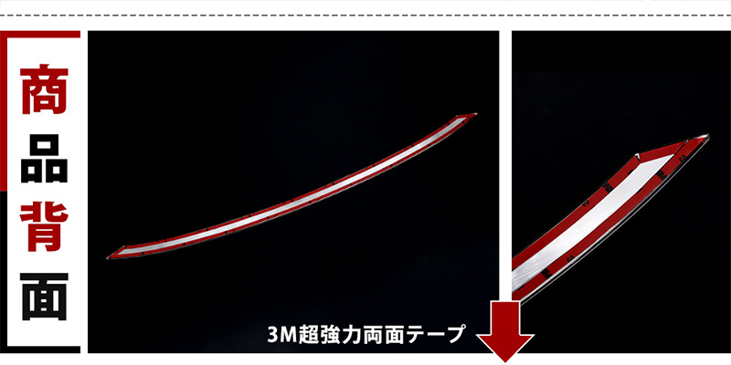 ■超強力両面テープ取付け済みです。粘着力が強い上、穴あけ加工など不要のため、素人でもご愛車に傷つかなく簡単装着できます。