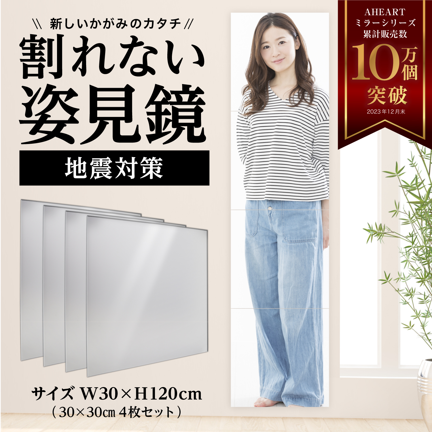 貼る鏡全身鏡 姿見鏡 姿見 壁掛け鏡 専門家が監修メディア多数掲載 割れない鏡 貼る 飛散防止 軽量 30×30cm 4枚セット