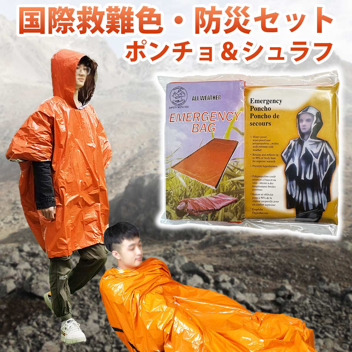 防災セット 動ける 保温 ポンチョ&シュラフ 静音設計 災害用 寝袋 非常用持出 備蓄品