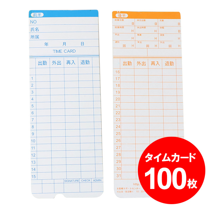 タイムカード 100枚 勤怠タイムカード タイム カード タイムレコーダー###タイムカード19-K###