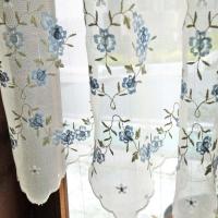 ai カフェカーテン ポスト投函で送料無料 ブルーローズ 縦30cm ベリーショート 花言葉 夢叶う 半透明オフホワイト生地に淡いブルーローズ刺繍 LC