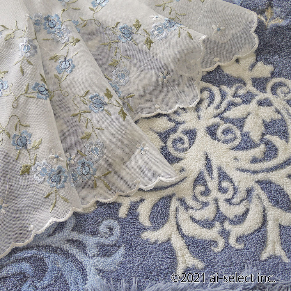 ai カフェカーテン ポスト投函で送料無料 花言葉 夢叶う ブルーローズ 135×45cm ショート 半透明オフホワイトの生地に薄色ブルーローズの刺繍 LC