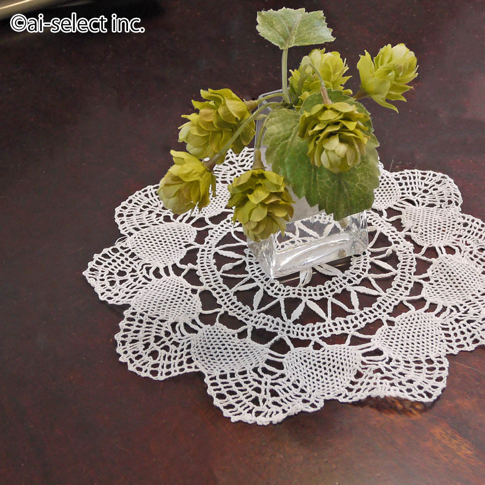 レースドイリー 約23cm レースマット ハートが可愛い 即納 ai ティーマット テーブルセンター イギリス風 手編み おしゃれ ホワイト ハート シンプル