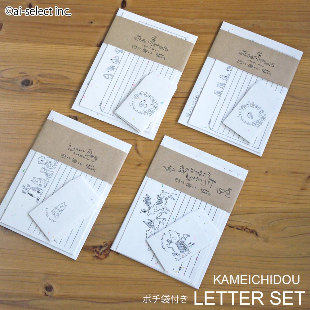 かめいち堂 森のなかまたち ポチ袋付レターセット イヌが仲間入り ニワトリ スズメ 犬 おてがみ 日本製 便箋セット 手紙 お礼 kss mn mom pap