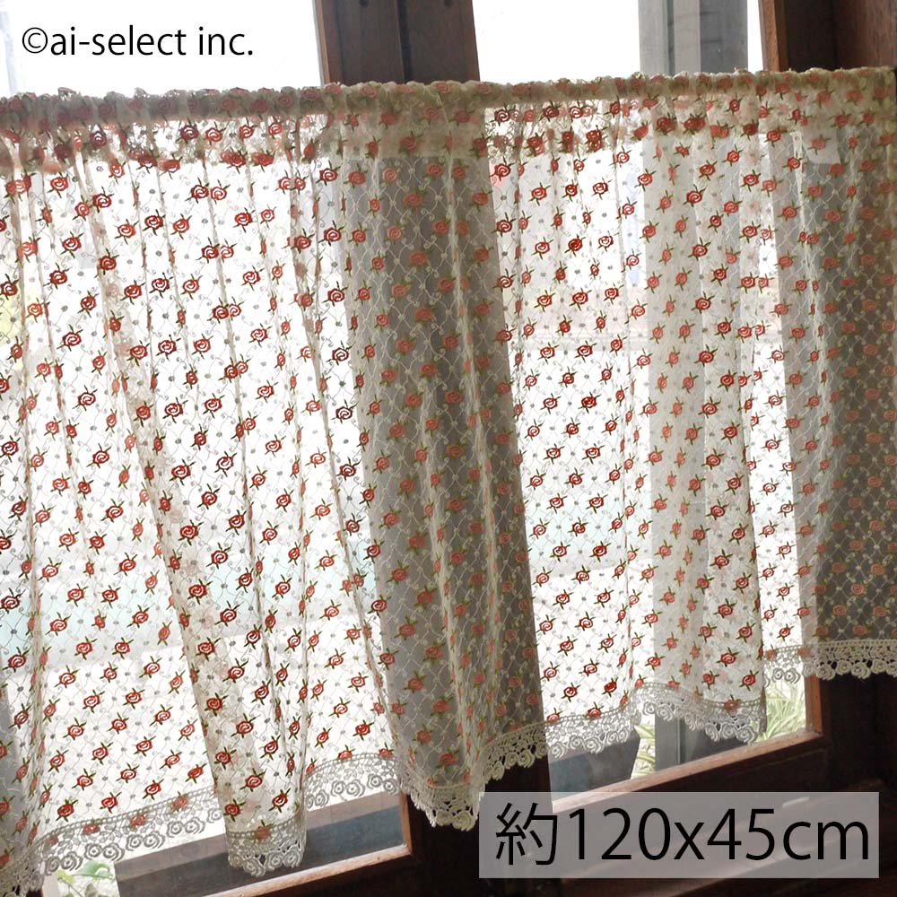 カフェカーテン ミニ ローズ刺繍 ガーデン 約120x45cm ローズビュヴァールカラー ピンク バラ ばら ロココ調 可愛い おしゃれ 高級 クラシック