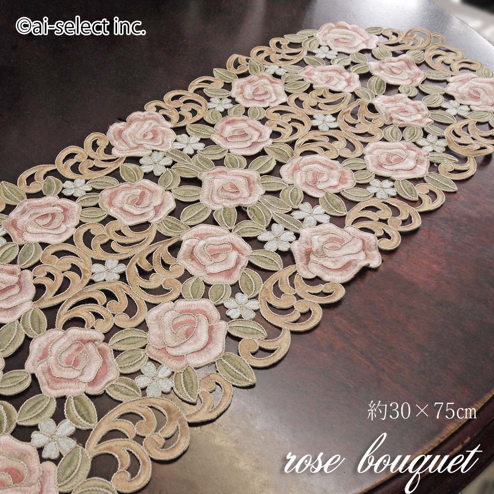 New テーブルセンター 30cm×75cm ai あすつく ローズブーケ ダイニングテーブルの中央に 薔薇 コード刺繍 カットワーク テーブルが華やかに 洗濯可能