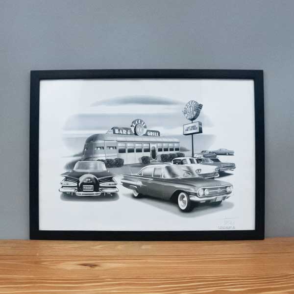 アートパネル インパラ 壁掛け 立てかけ 額縁 ブラック Route66 インテリア ウォールアート アートフレーム ガレージ ローライダー IMPALA Lowrider