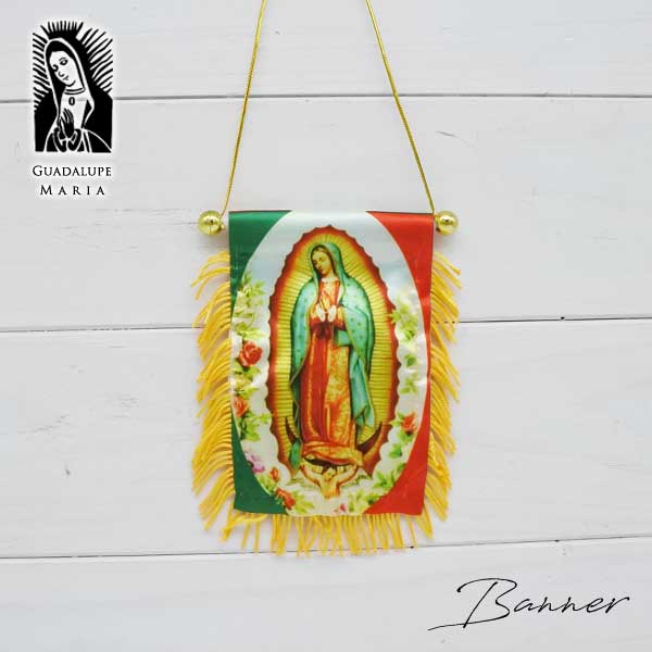 グアダルーペマリア ミニバナー 壁掛け 吸盤 フラッグ maria マリア様 グアダルーペ マリア 聖母マリア メキシカン インテリア 飾り 装飾 チカーノ ローライダー