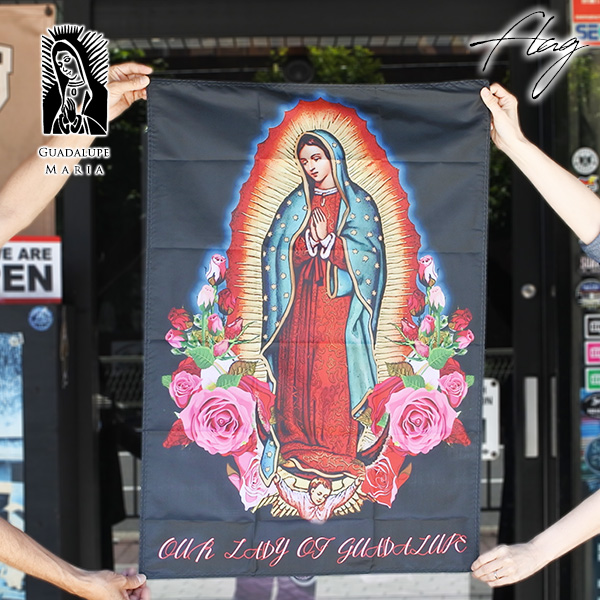 マリア フラッグ バナー 小さめ 旗 タペストリー ウォールインテリア ディスプレイ 花 バラ 薔薇 装飾 インテリア グアダルーペ マリア 聖母マリア メキシコ