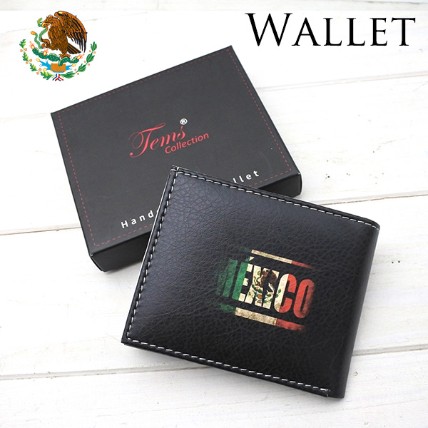 2つ折り財布 ブラック メキシコ フェイクレザー ウォレット カード入れ 国章 メキシコ国旗 国旗 蛇 鷲 サボテン 合皮 黒 財布 おしゃれ MEXICO メキシコ雑貨