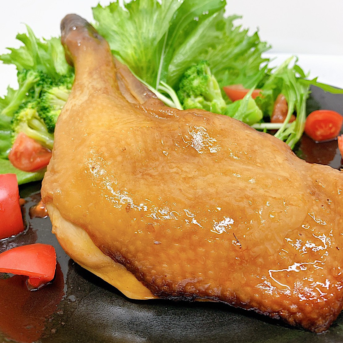 本品は名古屋コーチンのもも肉を骨付きのまま、秘伝のたれでローストした後、1本ずつ真空パックしております。