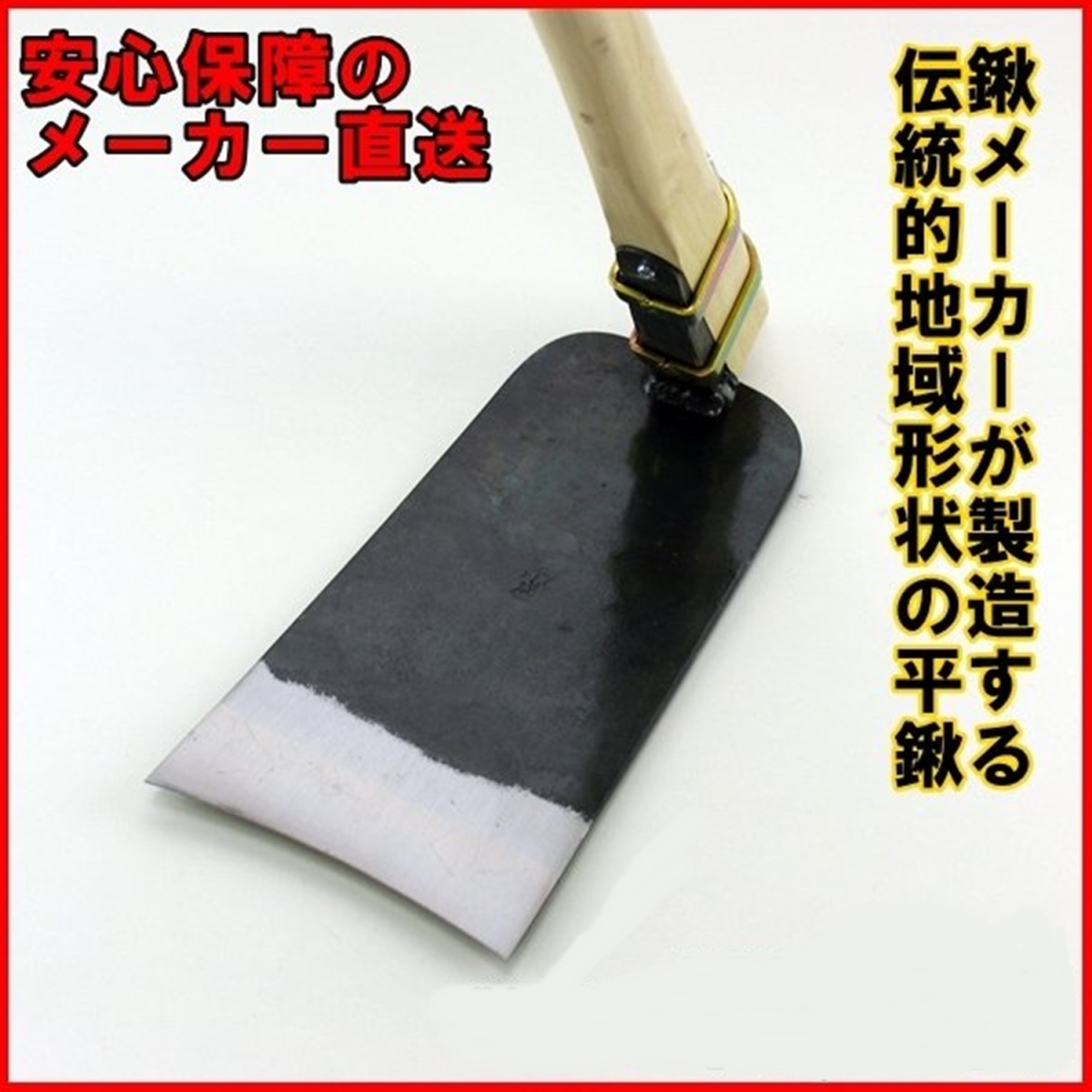 千葉県で広く使用される伝統的形状の平鍬。業務用使用に耐える本鍛造鋼付製造です。