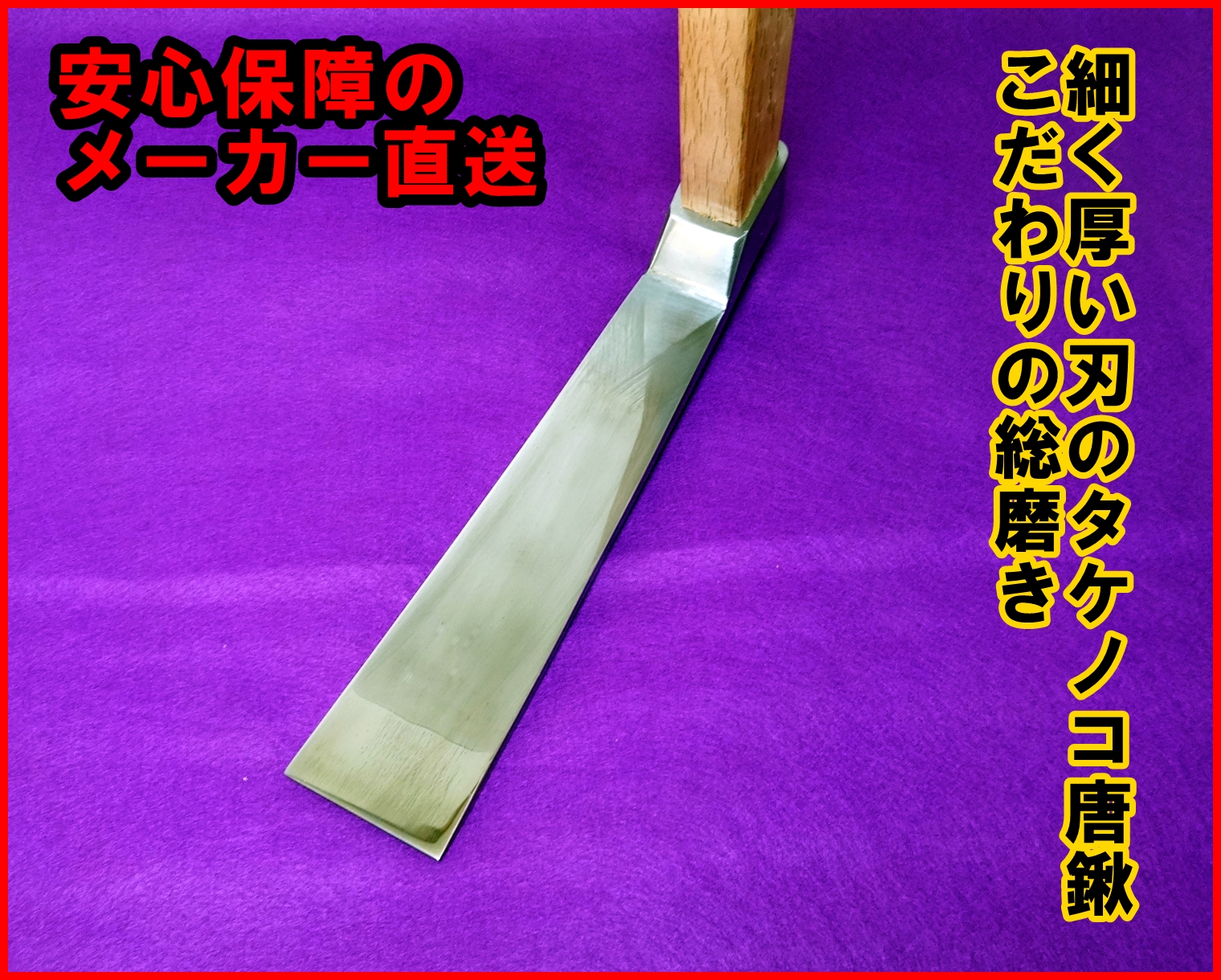 ピンポイントでタケノコを狙いやすい細い刃に厚みを付けて強度を上げたタケノコ掘り専用の丈夫な鍬です。