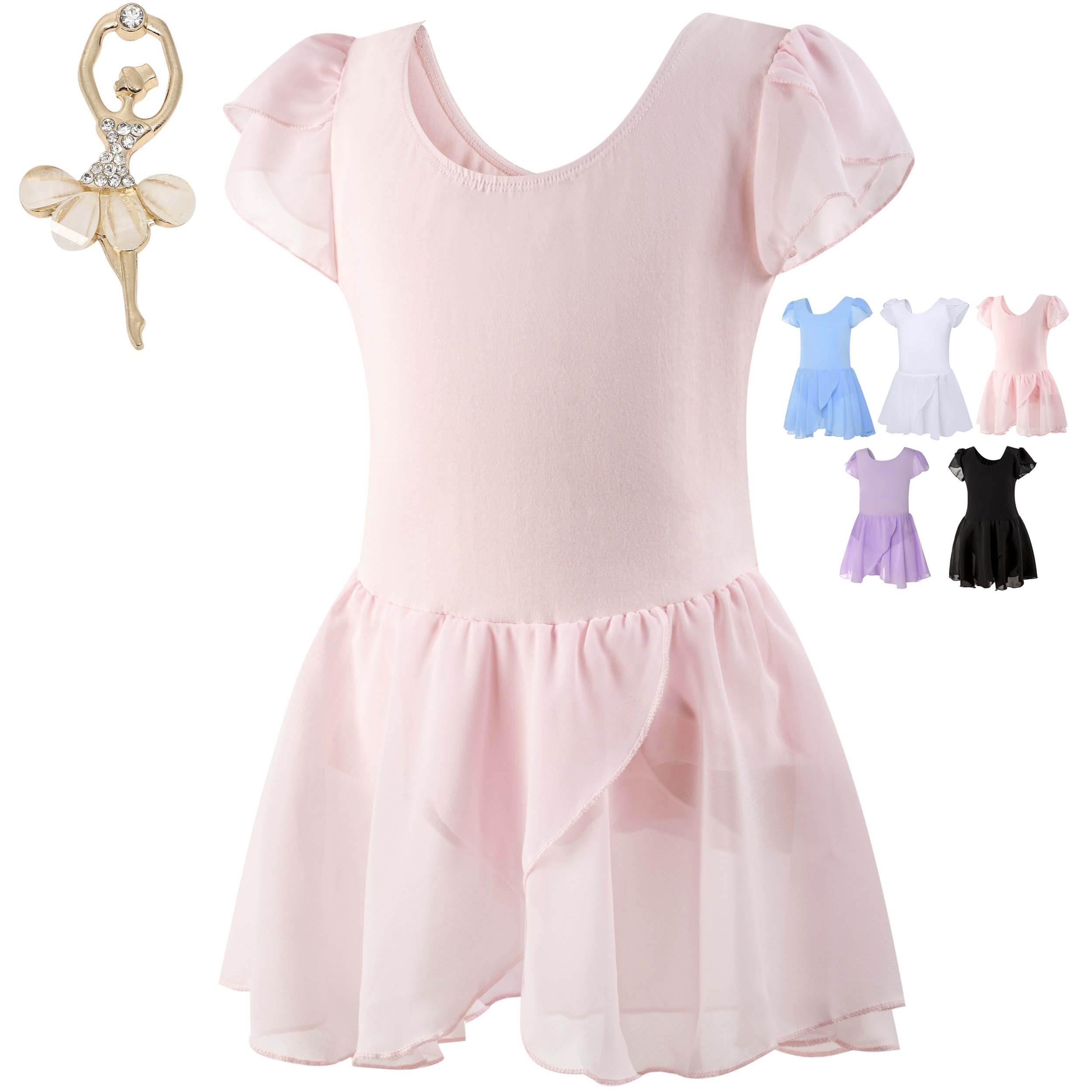 【Aigoda】バレエ レオタード 子供 キッズ 定番 105 -170 シフォンスカート付き 新体操 練習着 発表会 ジュニア 可愛い お洒落 シンプル 通気性 かわいい 綿