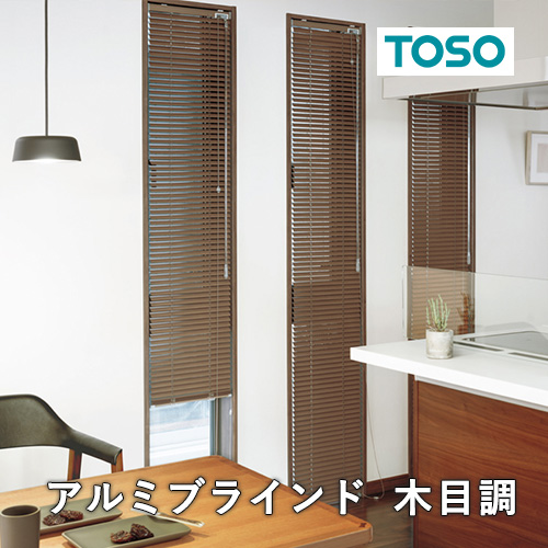 TOSO社製 様々な窓に対応するワンポール操作のアルミブラインド 木目調タイプ