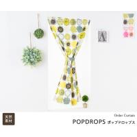 オーダー カフェカーテン 丸みを帯びたキュートな花柄 綿100%カフェカーテン「ポップドロップス」