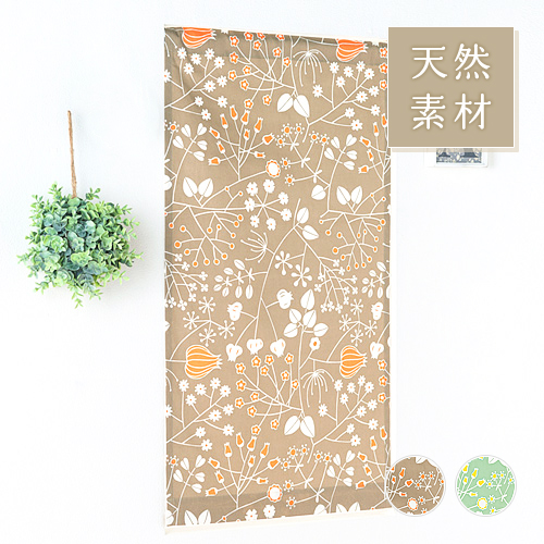 オーダー カフェカーテン 優しいタッチで描かれた素朴な植物柄 綿100%カフェカーテン「カシュカシュ」