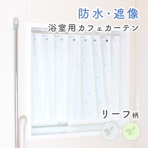 既製カフェカーテン お風呂用カフェカーテン 遮像カフェカーテン 防水カフェカーテン 透けにくい 見えにくい 外から見えない 防水 防湿 防カビ 水に強い 簡単取付 安い お風呂場 浴室 脱衣所 水回り リーフ柄