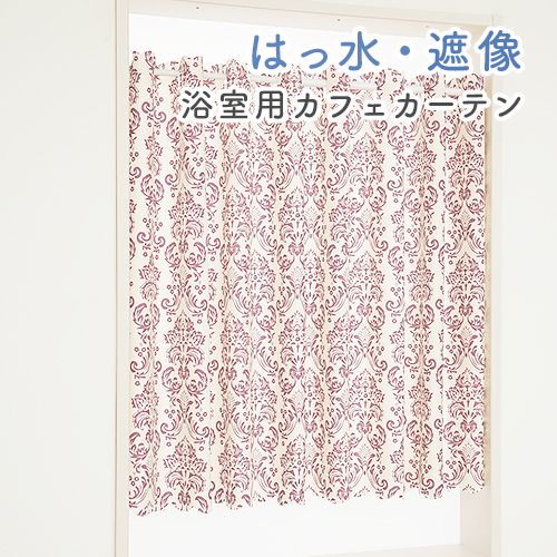 エレガントなオーナメント柄の浴室用遮像カフェカーテン「ダマスク」【幅145cm×丈45cm】