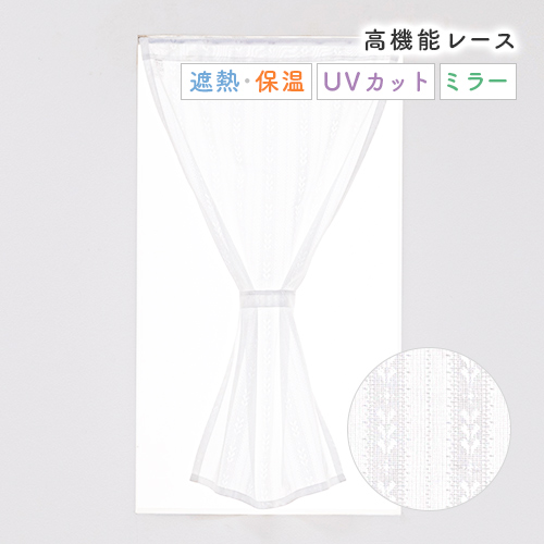 遮熱・断熱、保温、ミラー効果、UVカット、洗濯OK(ウォッシャブル)、タッセル付き。