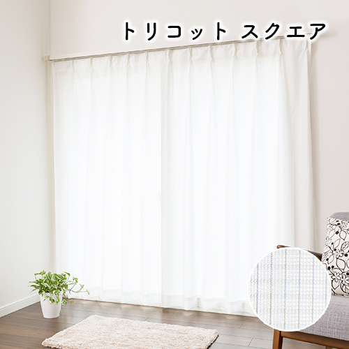 オーダーカーテン 夜も透けにくい細やかなチェック柄の入ったシンプルな防炎ミラーレースカーテン「トリコット スクエア」