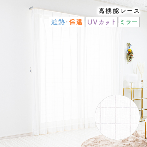 カジュアルなチェック柄のUVカットミラーレースカーテン「グリッド」