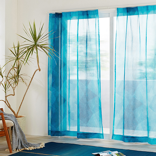 複雑に重なりあう幾何柄模様のレースカーテン Indico「ラーゴ」