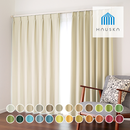 オーダーカーテン 遮光率99.99% 選べる48色 無地の1級遮光防炎カーテン「HAUSKA」ナチュラル・ビビット