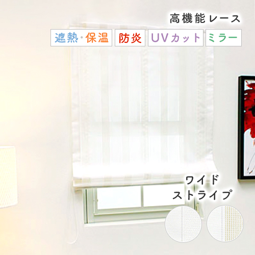 オーダー ローマンシェード エアコン効率アップ! 防炎 ワイドストライプ柄 省エネミラーレース ローマンシェード