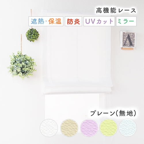 オーダー シングルシェード エアコン効率アップ! 無地の防炎 省エネミラーレース ローマンシェード