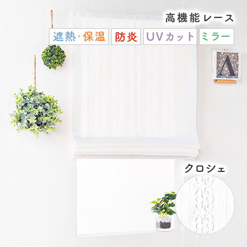 オーダー シングルシェード 花のクロシェとラメのストライプ柄 防炎UVカットミラーレースローマンシェード「クロシェ」
