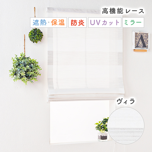 オーダー シングルシェード ナチュラルなボーダーが爽やかな防炎UVカットミラーレースローマンシェード「ヴィラ」