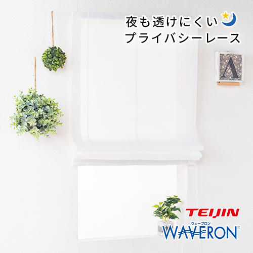 オーダー シングルシェード 夜も透けにくいプレーンで艶やかな防炎遮像レースローマンシェード「ベール」
