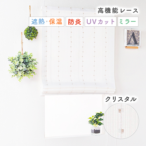 オーダー シングルシェード エレガントなラインドロップの防炎UVカットミラーレースローマンシェード「クリスタル」