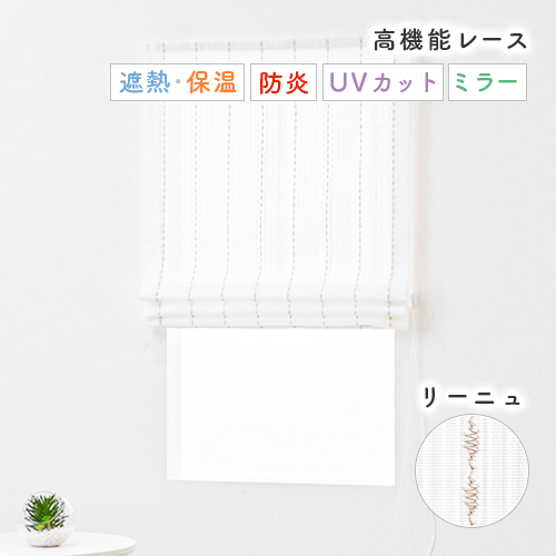 オーダー シングルシェード ナチュラルな色合いのエレガントなストライプ柄 防炎UVカットミラーレースローマンシェード「リーニュ」