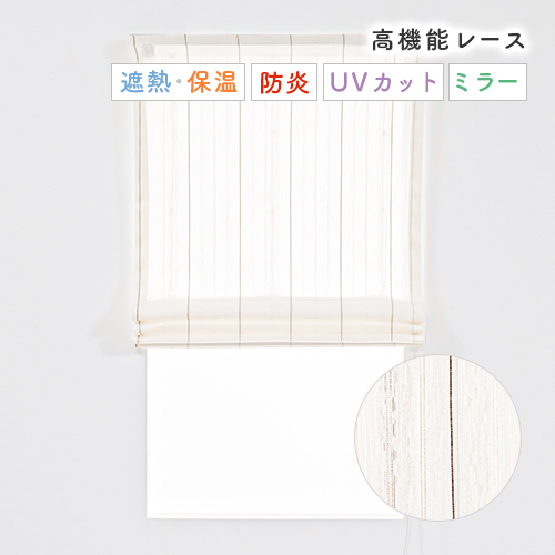 茶色とラメのストライプ柄の防炎UVカットミラーレースローマンシェード「ラテ」