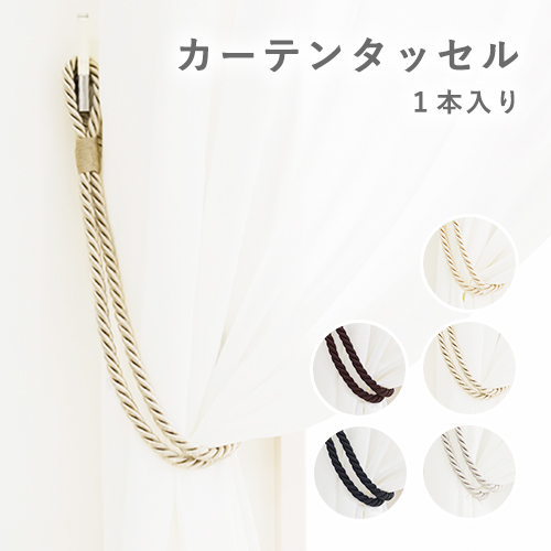 上品で柔らかい光沢のロープタッセルはシンプルながらも高級感があり、居間や寝室、子供部屋など様々なお部屋にマッチします。