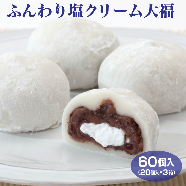 ふんわり塩クリーム大福 60個セット (20個入×3箱) 送料無料 冷凍 塩大福 和スイーツ 和菓子 お茶菓子 家族団らん おやつ 個包装 簡易パッケージ