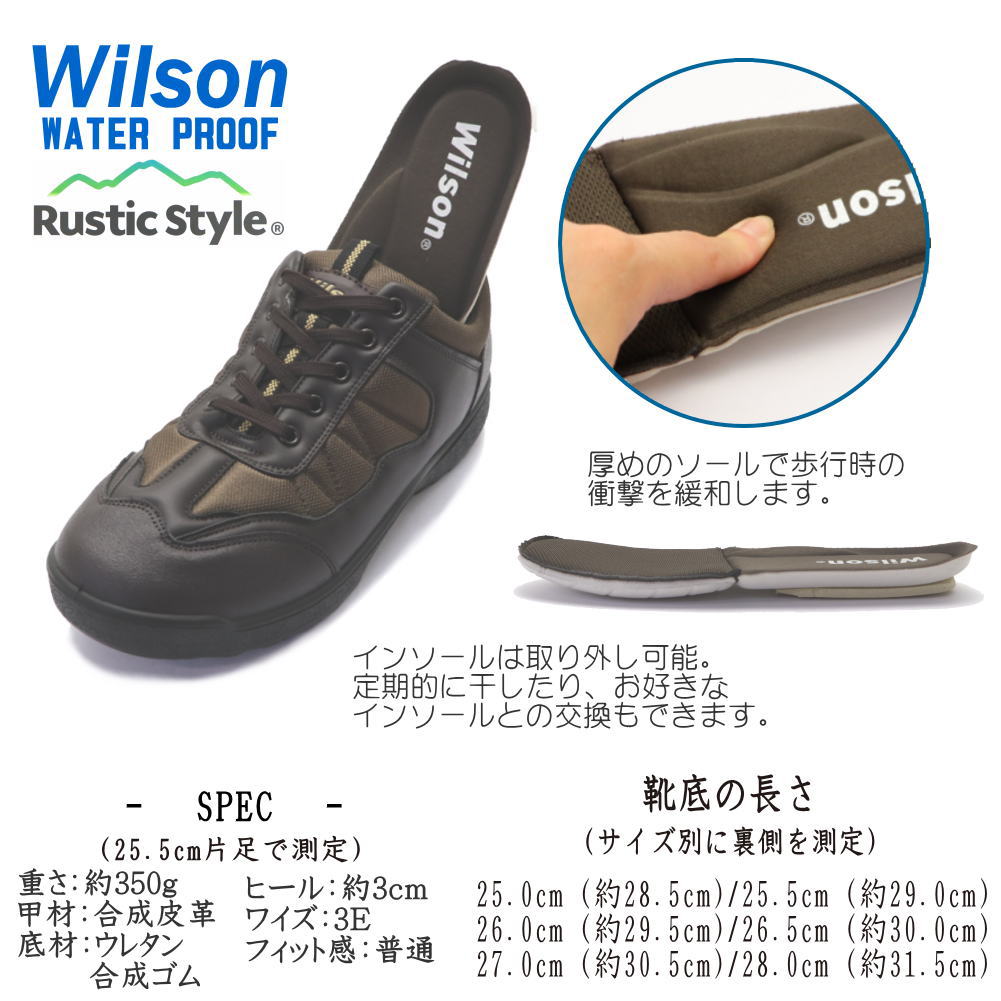 メンズ Wilson ウィルソン RusticStyle ラスティックスタイル 防水 防滑 幅広 3E ウォーキングシューズ 紐靴 カジュアル No.1901