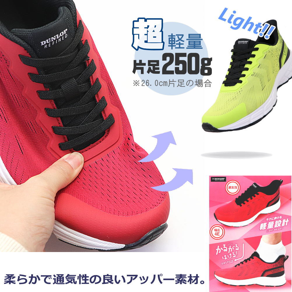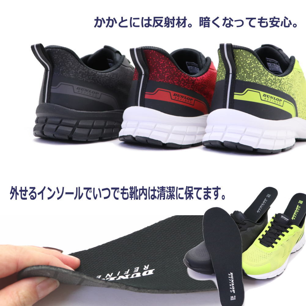 ダンロップリファインド 手を使わず履ける 幅広 4E ウォーキングシューズ メンズ スニーカー DUNLOPREFINED ハンズフリー 反射板 No.2032