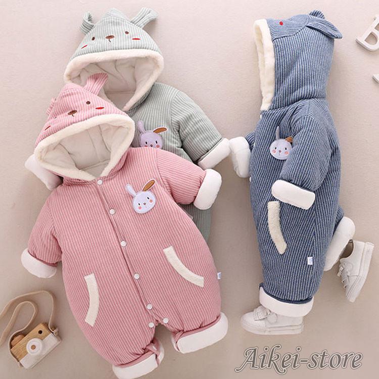 長袖 ロンパース 防寒着 つなぎ 秋冬 新生児 幼児 帽子付き カバーオール 女の子 男の子 ジャンプスーツ ベビー服 赤ちゃん 百日祝い 出産祝い