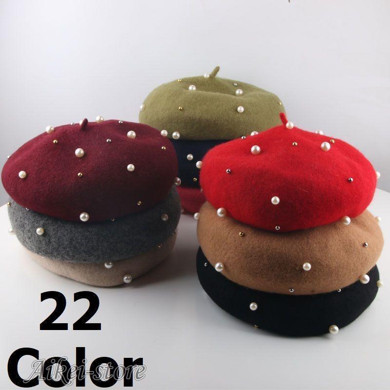 ベレー帽 帽子 レディース パール ファッション小物 おしゃれ シンプル 無地 プレーン レッド ブラック ベージュ パープル ブルー ピンク ネイビ