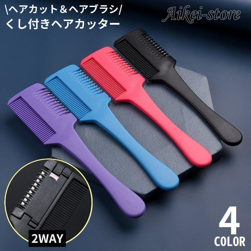 ヘアカッター くし付き 2WAY コーム ヘアブラシ 櫛 ハサミ ヘアカット セルフカット 前髪カット ヘアケア 携帯用 持ち手付き