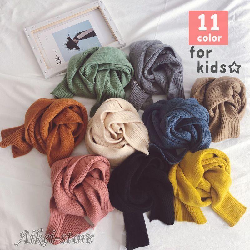 マフラー 子供用 キッズ ベビー 女の子 男の子 ニットストール 無地 シンプル おしゃれ かわいい ファッション小物 冬 秋 お出掛け 防寒 寒さ対