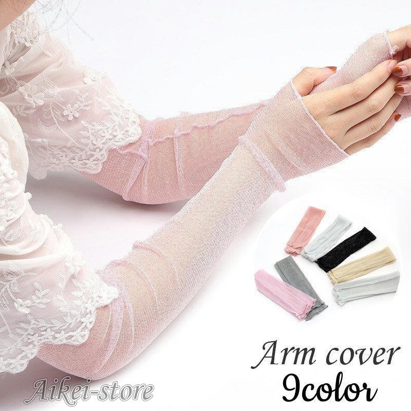 アームカバー 腕カバー レディース 指なし レース ラメ メロウフリル 通気性 透け感 シアー シースルー 日焼け対策 日よけ おしゃれ かわいい 大