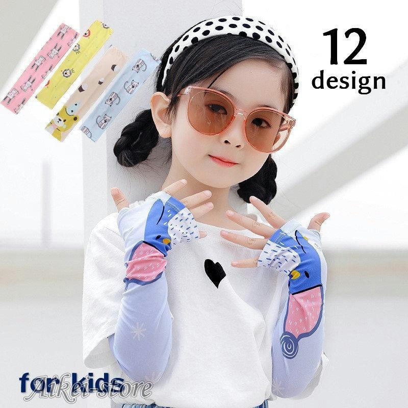 アームカバー キッズ 男の子 女の子 ロング丈 腕カバー 動物プリント アニマル かわいい キュート おしゃれ お出かけ UVカット 指穴あり 紫外線