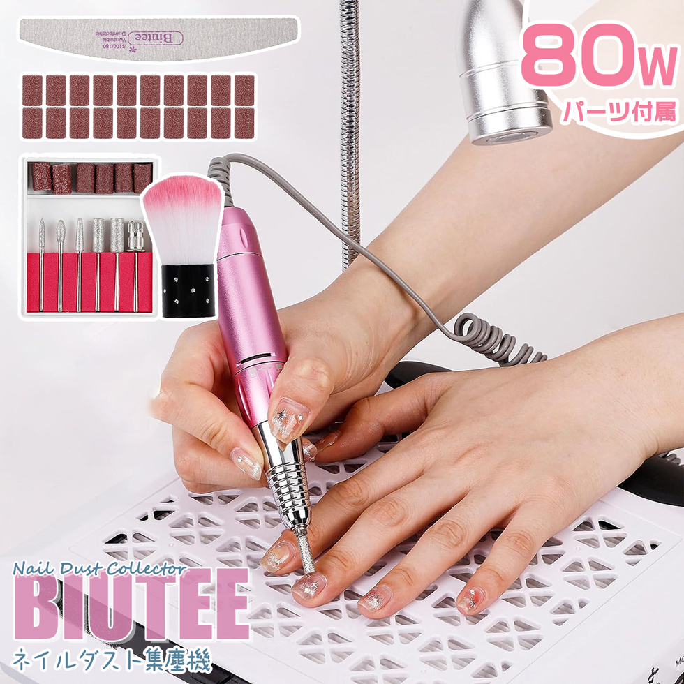 ネイルダスト集塵機 複数の機能搭載 4in1 マット付き Biutee 80W AC100-240V ネイル掃除機 クリーナー サロン強力吸収 電動 マットが付き 手首が保護でき
